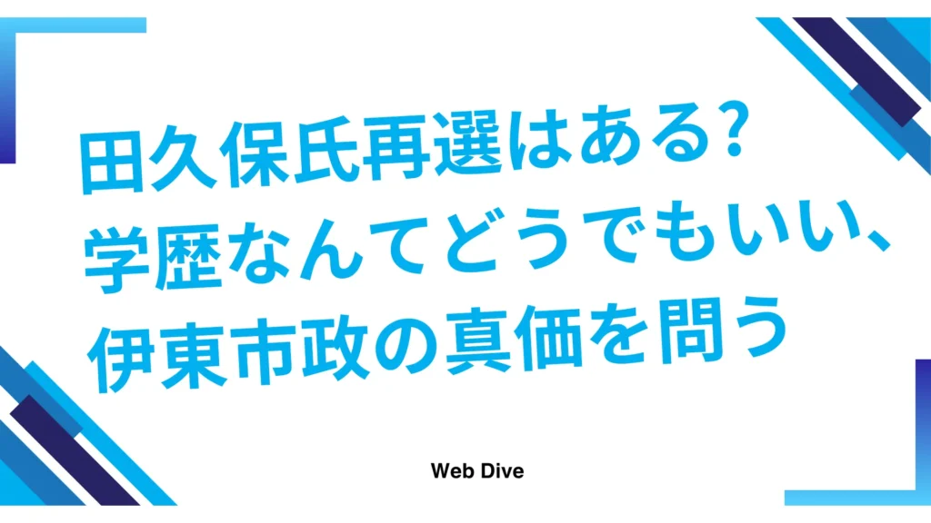 田久保氏再選はある?学歴なんてどうでもいい、伊東市政の真価を問う